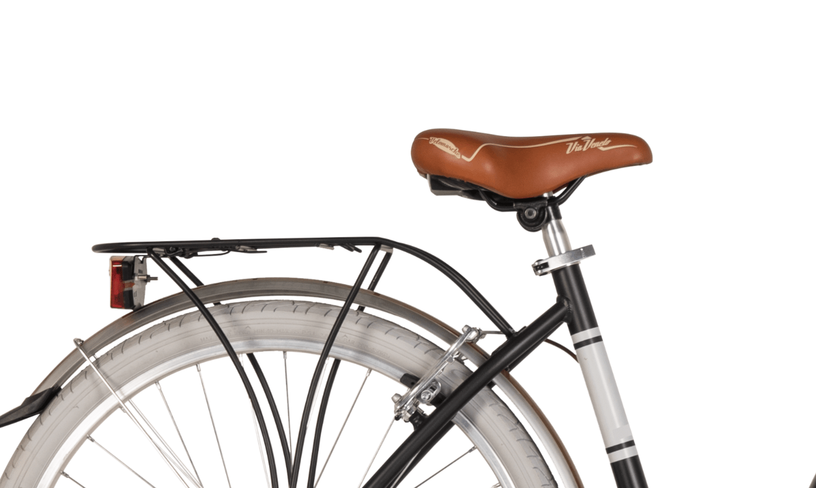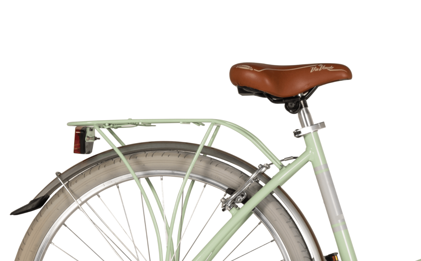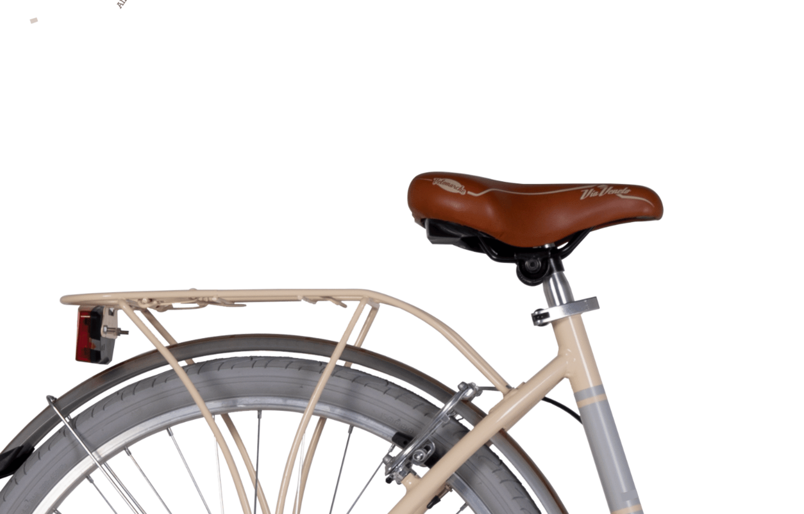 La nuova bici da passeggio Nuvò Lady è dotata di ruote 26 x 1.75, telaio in alluminio 46″, cambio SHTX300, 6 velocità, sella Bassano Selle, freni V-brake, cavalletto, luci LED, portapacchi anteriore e posteriore.