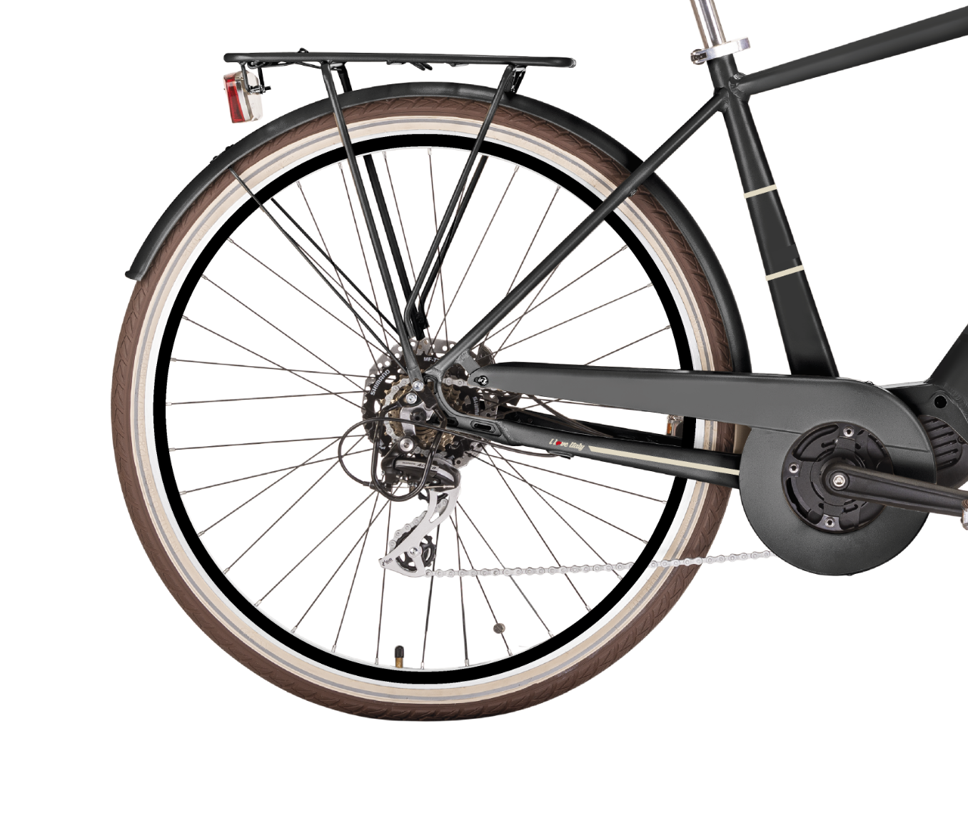 La bici elettrica E-Lite Man è il nuovo modello Airbici: questa bici monta il motore centrale Oli Spot One da 250 W e 60 Nm, velocità massima 25 m/h, 5 livelli di assistenza, batteria integrata da 36 V 10.4 Ah 360 Wh, con un’autonomia di circa 60 km (con livello 3) fino a 140 km (con livello 1), display LED a colori, peso 27 kg, telaio in alluminio 6061 taglia 50, 7 velocità Shimano M315, cambio Shimano M360, freni idraulici Shimano MT200, cerchio a doppio profilo da 28″, ruote 28 x 1.75, sella: Bassano Selle, altezza telaio 50 cm