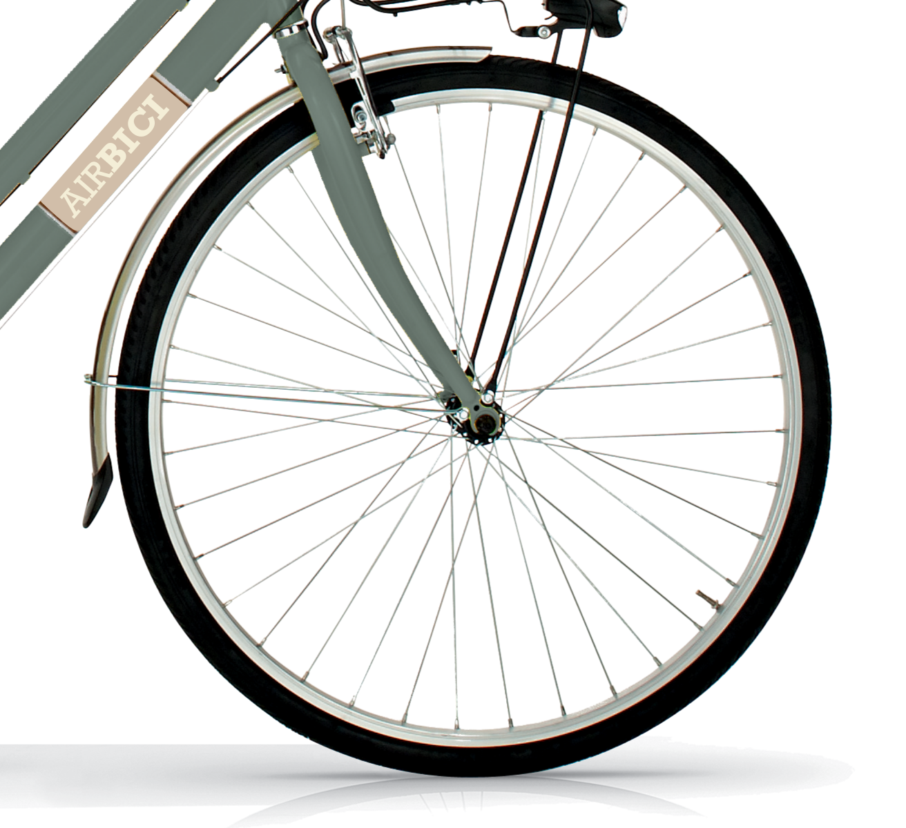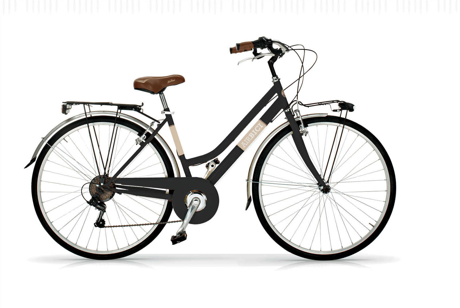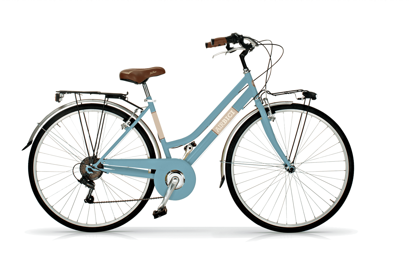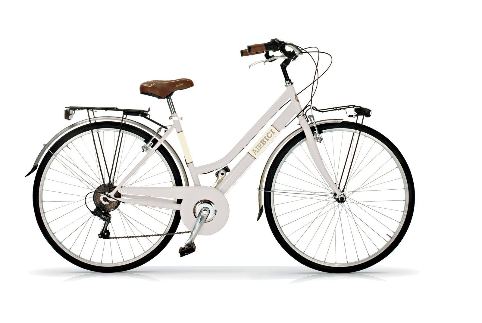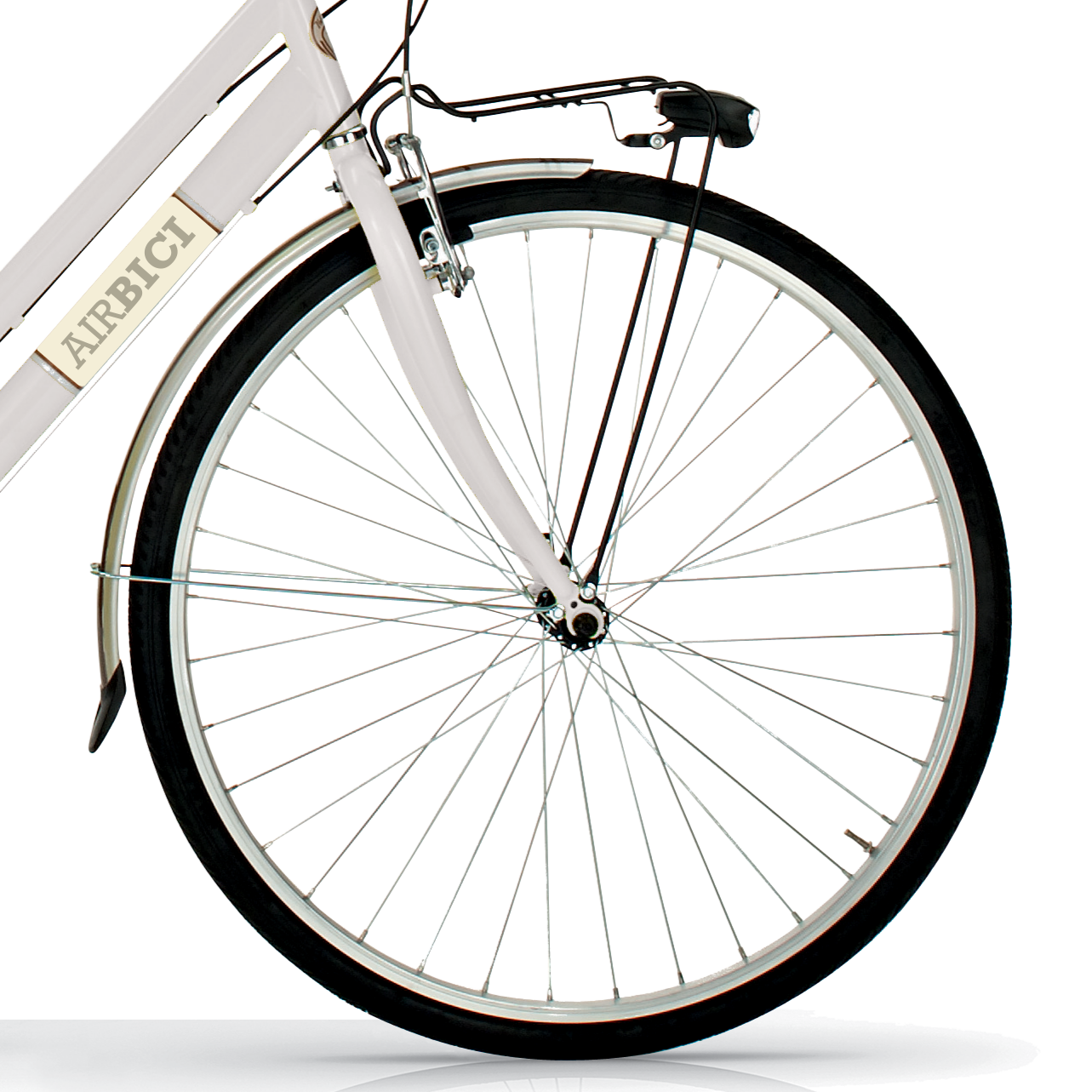 Bicicletta da passeggio Airbici Allure, telaio in acciaio CR-MO da 46cm, ruote 700x35C, 6 velocità Shimano, freni v-Brake in alluminio, portapacchi, parafanghi, cavalletto, luci a led.