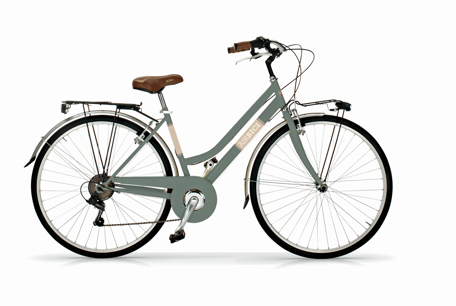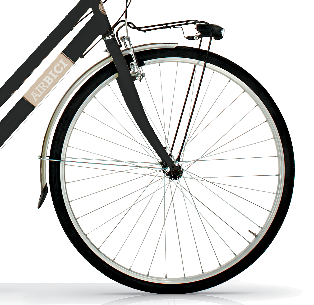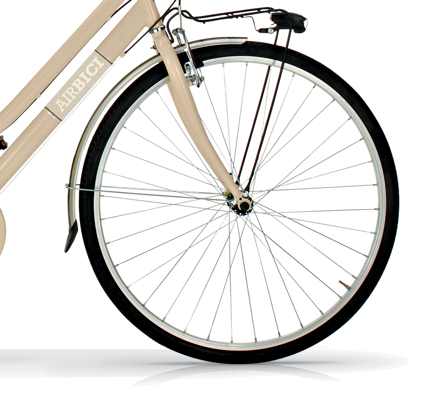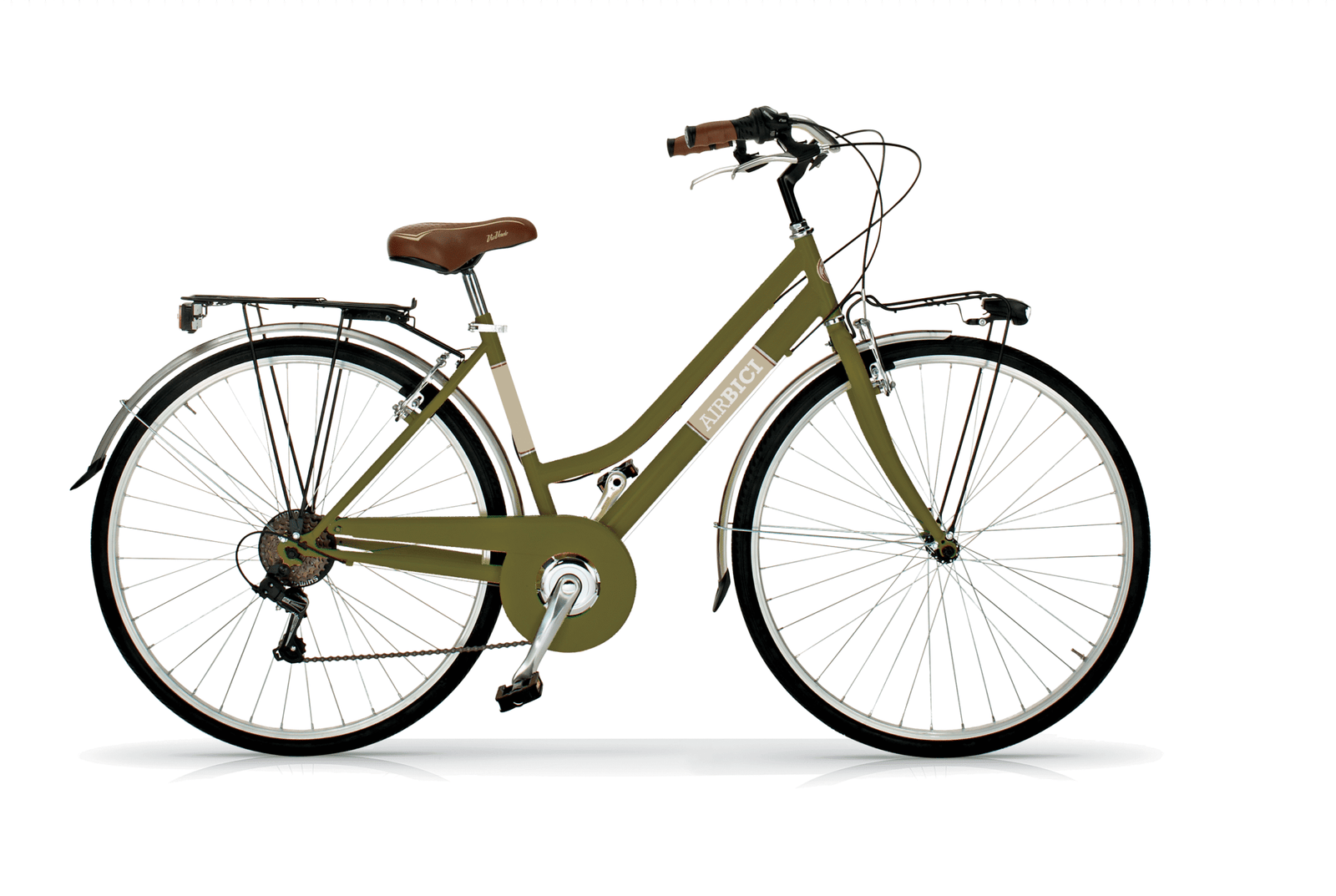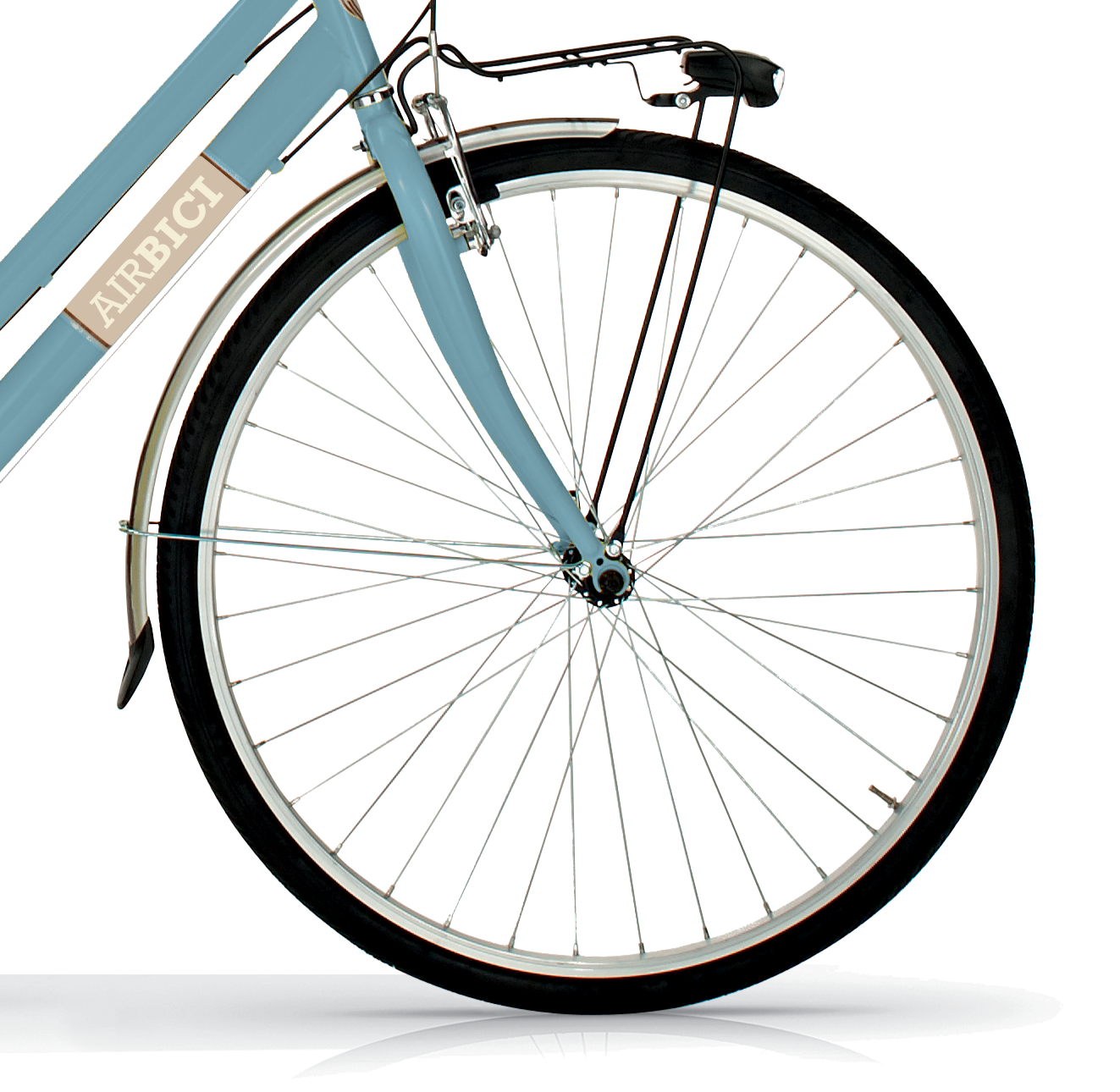 Bicicletta da passeggio Airbici Allure, telaio in acciaio CR-MO da 46cm, ruote 700x35C, 6 velocità Shimano, freni v-Brake in alluminio, portapacchi, parafanghi, cavalletto, luci a led.
