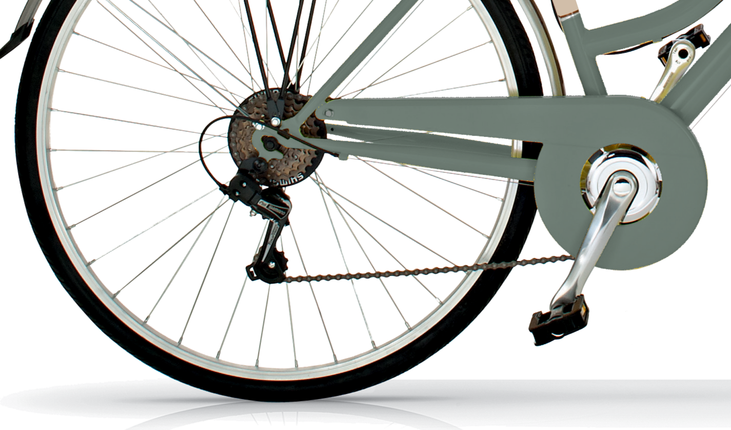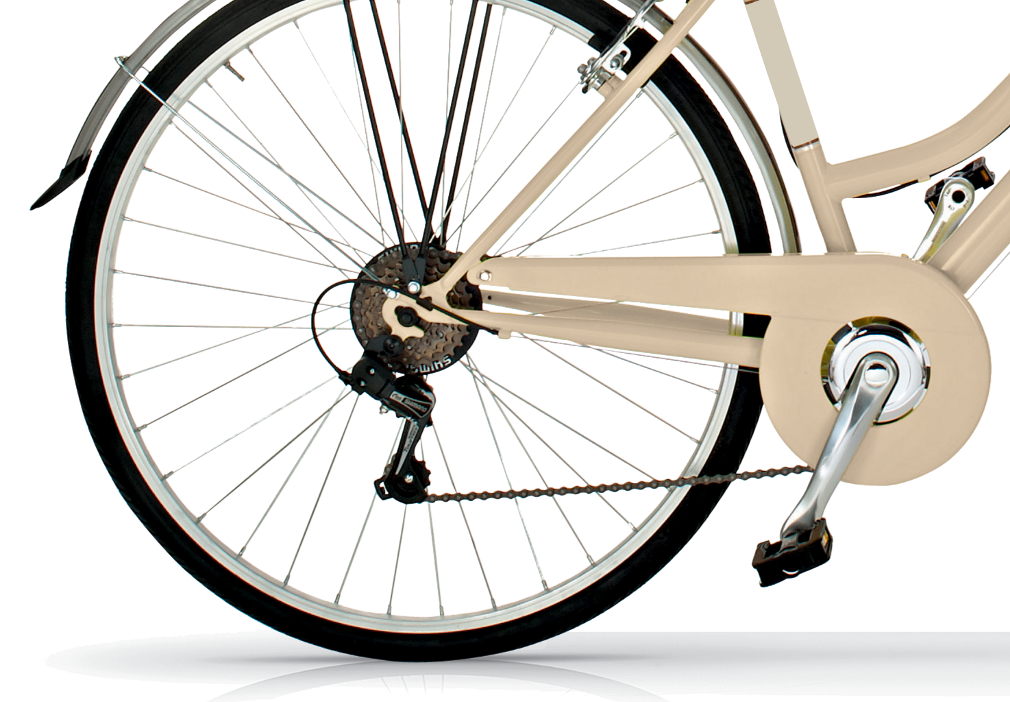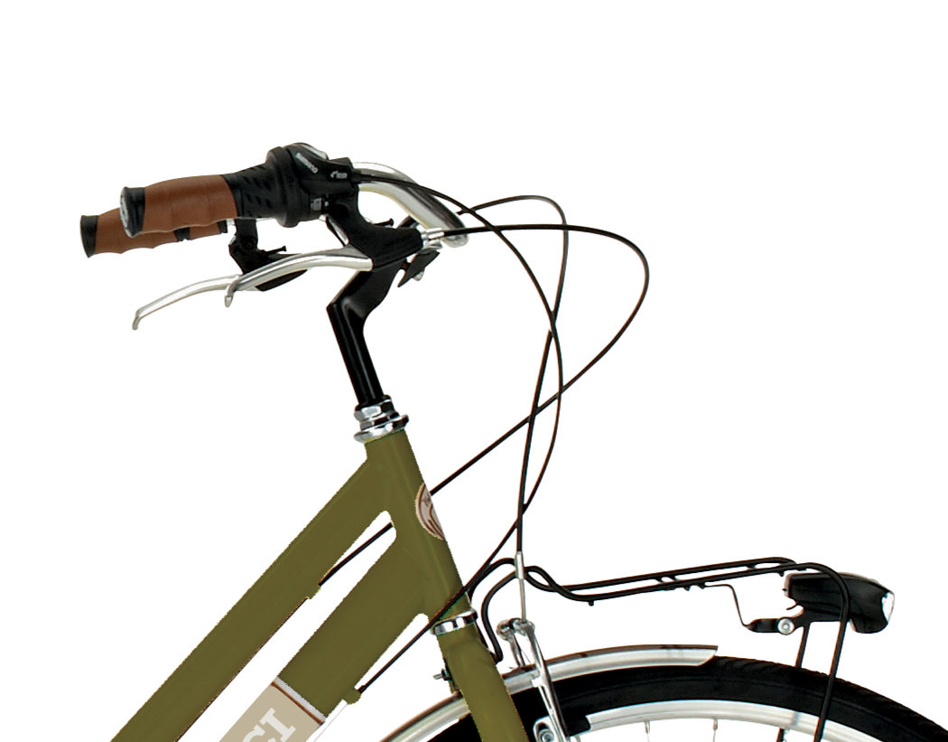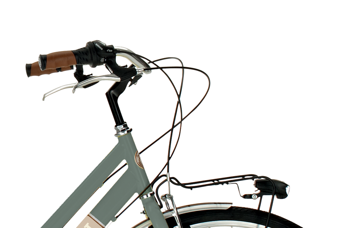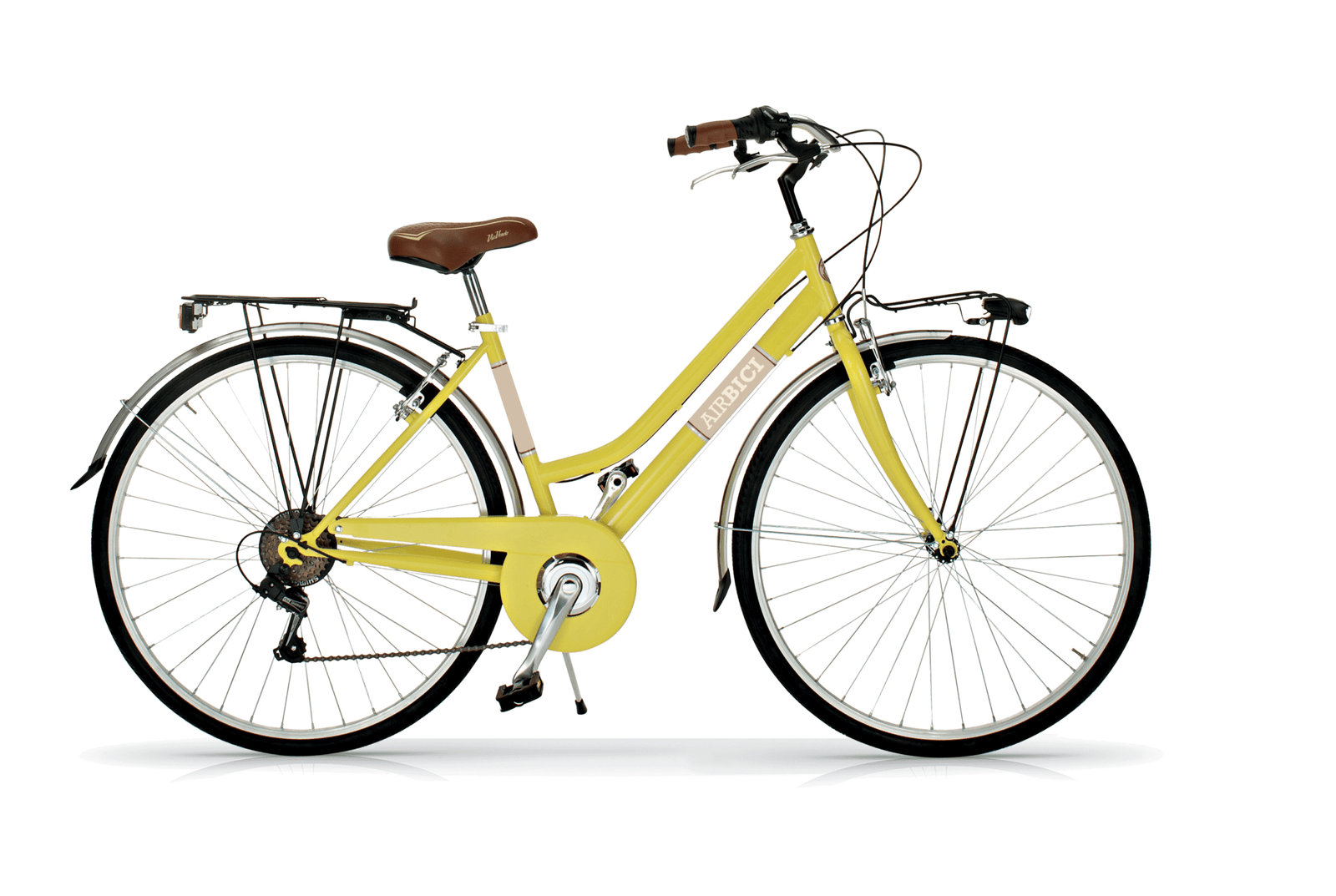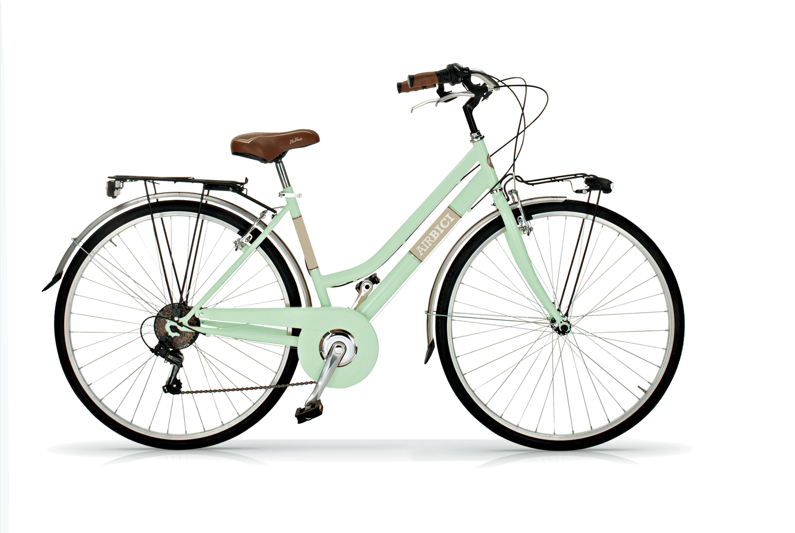 Bicicletta da passeggio Airbici Allure, telaio in acciaio CR-MO da 46cm, ruote 700x35C, 6 velocità Shimano, freni v-Brake in alluminio, portapacchi, parafanghi, cavalletto, luci a led.