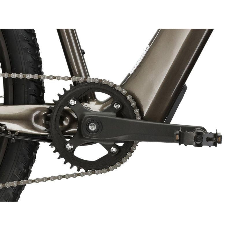 La forcella ammortizzata SR Suntour con un’escursione di 100 mm garantisce un funzionamento fluido e un’ottima ammortizzazione delle vibrazioni su superfici irregolari. Il blocco situato sulla testa della forcella permette di percorrere i tratti pianeggianti in modo più facile ed efficace.