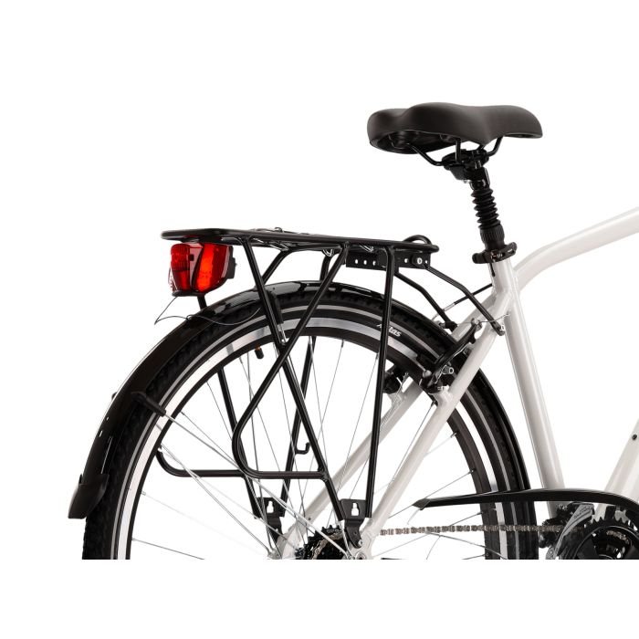 Il telaio della Kross Trans 4.0 è realizzato in alluminio performance. È una speciale lega di alluminio 6061 ad alte prestazioni, che rende la bici rigida e resistente alle rotture. Allo stesso tempo è un materiale relativamente leggero, capace di sorprendere molti ciclisti per le sue caratteristiche. Inoltre, il telaio è verniciato a polvere, per una maggiore durata della vernice e resistenza ai danni meccanici. Le luci integrate rendono più facile pedalare al buio, e la sella Selle Royal di alta qualità ti conquisterà con il comfort che offre anche sulle lunghe distanze.