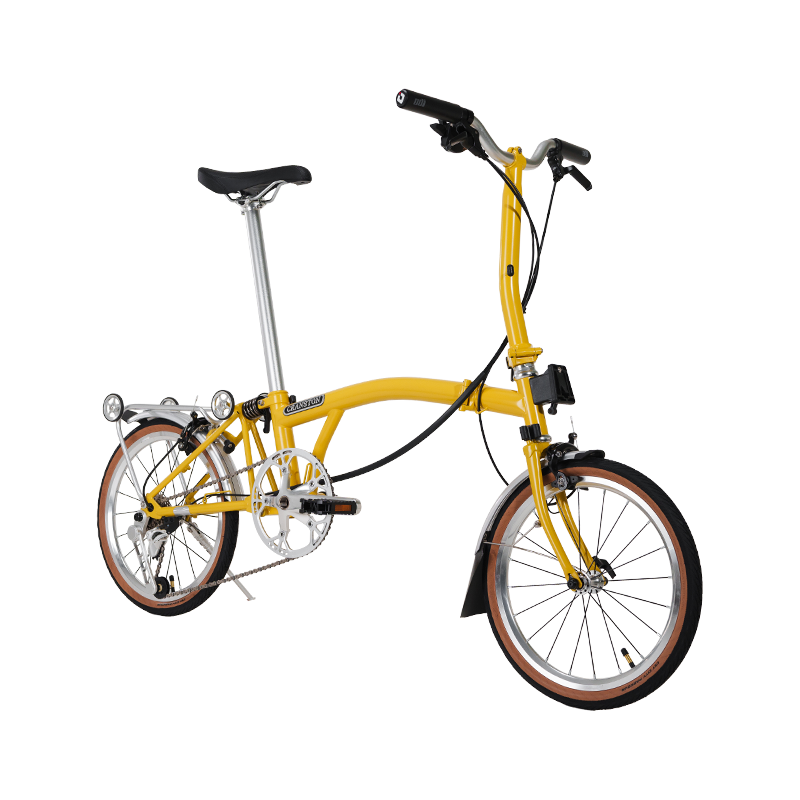 Sistema di trasmissione: Guarnitura cava da 50 denti + cambio DCCH a 7 velocità compatibile Brompton