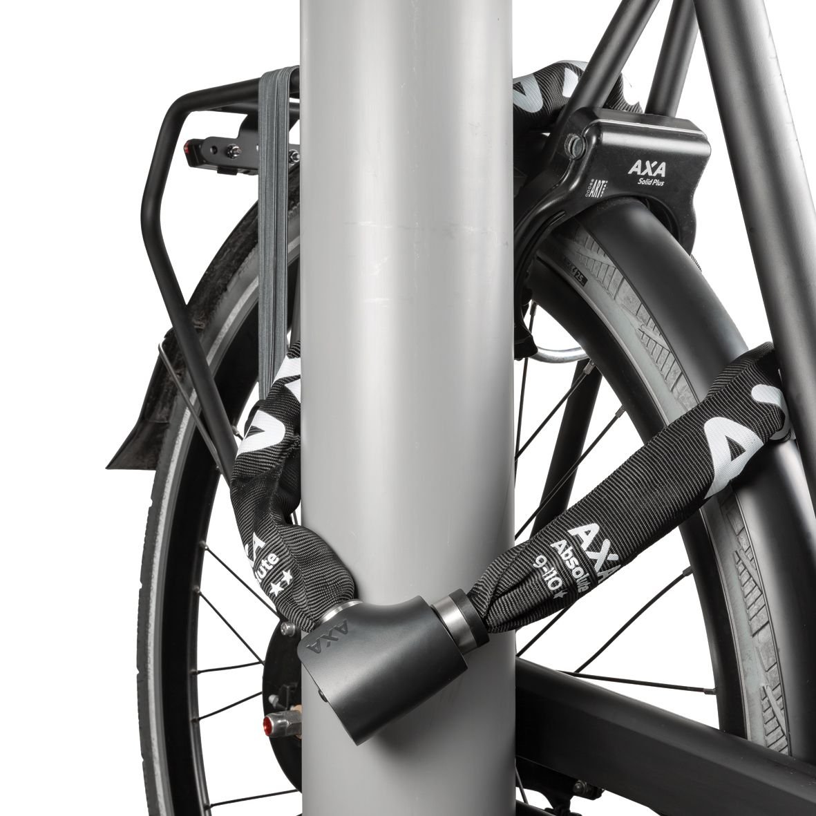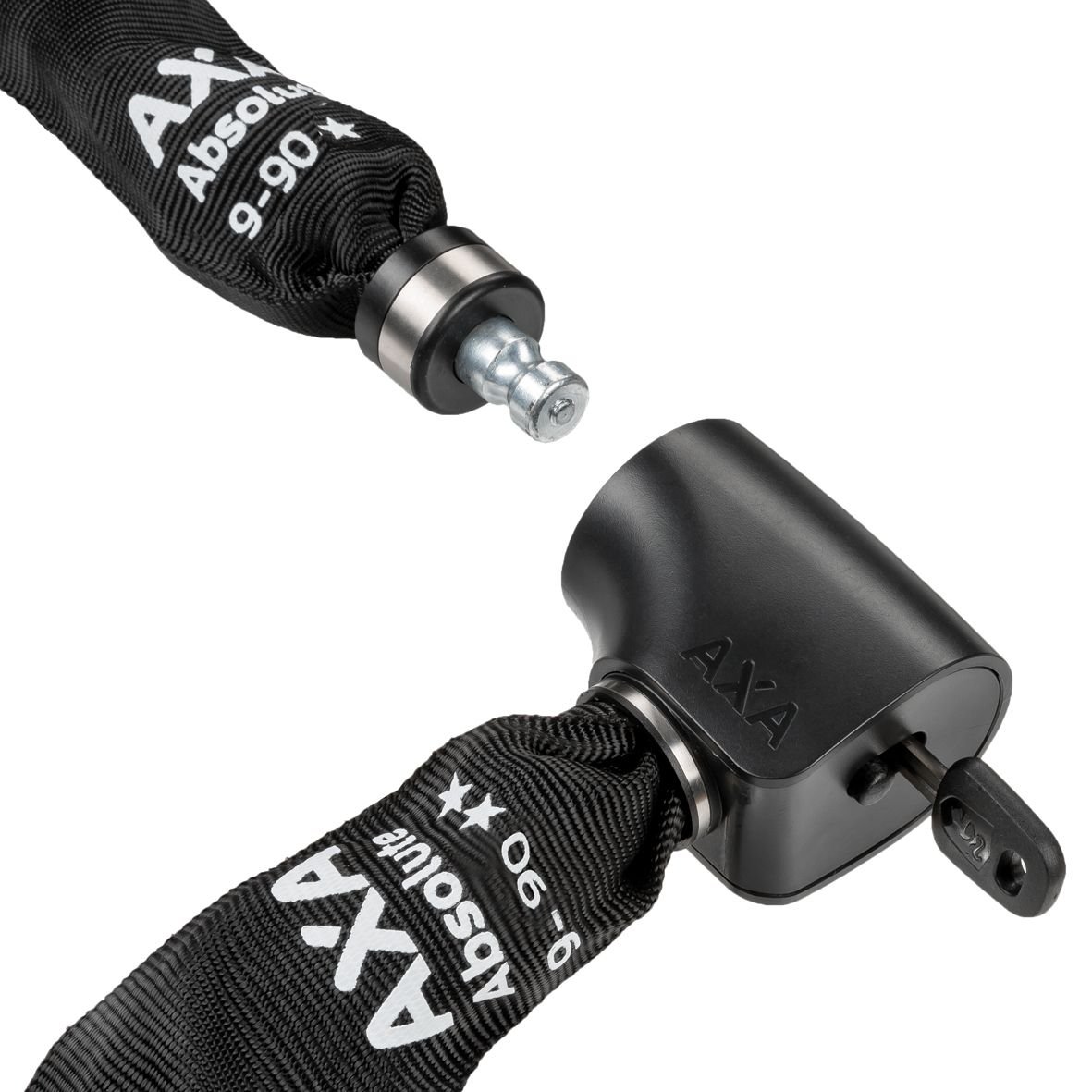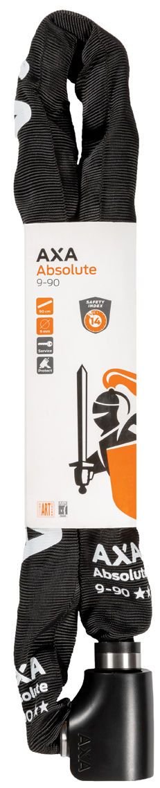 Absolute ha una lunghezza di 90 cm, così puoi fissare facilmente la bici a un palo o a una recinzione. Il diametro delle maglie in acciaio temprato è di 9 mm e il cilindro ha un cappuccio protettivo. Questo significa che il cilindro è protetto da umidità e sporco, così puoi usare la catena più a lungo. Inoltre, la catena ha una robusta guaina in poliestere che evita graffi sulla bici.