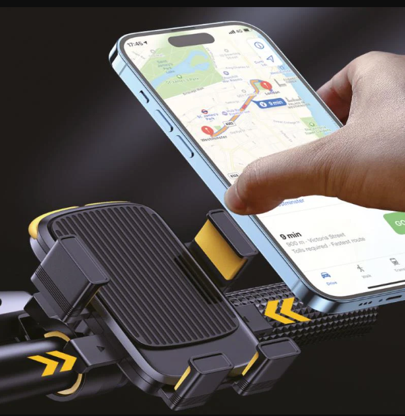 • Supporto resistente con sistema di sicurezza elastico che mantiene il dispositivo saldamente fissato durante il tragitto. La sua struttura flessibile e stabile permette un posizionamento rapido e un’eccellente fissaggio anche in movimento.