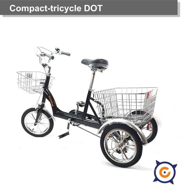 Il nuovo triciclo DOT per adulti, compatto e con ruote da 14″. Il differenziale posteriore e le ruote piccole lo rendono facile da manovrare senza perdite di trazione. Adattabile a diverse altezze grazie alla sella e al manubrio regolabili.
